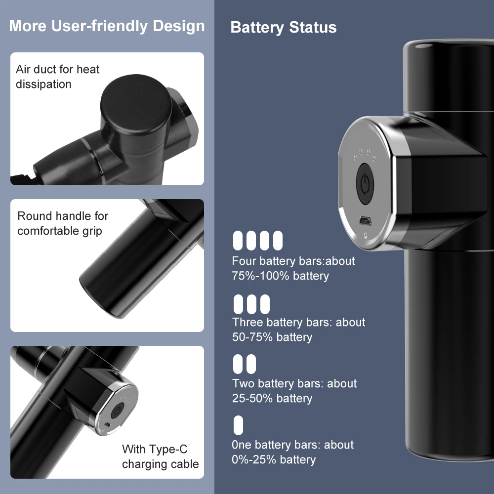 Function: 4-speed vibration, 1000-4000 rpm/min high frequency vibration, mini portable
